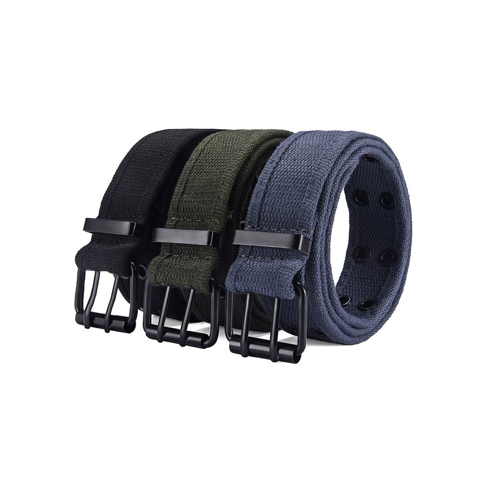 Men’s Double Buckle Canvas Belts Multiple Holes